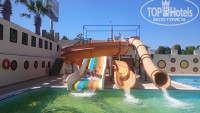 В первый день горки не работали, но по просьбе на ресепшен нам их включили, и мы зажигали втроем в пустом бассейне.