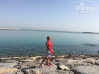 Номера смотрят на пляж, который находится в 5 минутах ходьбы пешком от отеля. Так же до пляжа ходят мини-кары, практически без пауз. Пляж небольшой, чистый, белый песочек. Вода чистая, ракушек полно. Если погулять дальше от пляжа по насыпи, можно найти морских скатиков и кучу ракушек. На пляже бар, где тебе по твоему браслету бесплатно дают воду, газировку и соки. Остальное за отдельную плату, которая снимается с депозита, т.е. не нужно носить деньги на пляж. Мороженка стоила 12 дирхам. На пляже натянута сетка, лежит мяч, можно играть в волейбол.