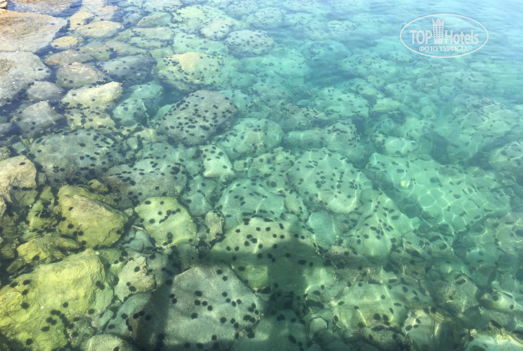 Другая сторона отеля смотрит на бассейн, где мы не купались, так как нам хватало моря и персидский залив, с набережной и понтоном, куда можно выйти и красиво пофоткаться, понаблюдать за рыбами и морскими ежами. Классно.=-)