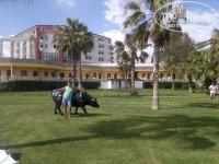 В отель приехали рано утром, заселили быстро, может помогли 2 бутылки водки и номер дали хороший с видом на море. После заселения пошли на завтрак, а потом на пляж. Пляж песчаный, лежаков много. Выбор блюд в ресторане огромный, всем всего хватало. И когда закрывался ресторан, открывалось какое то другое кафе на территории, есть можно было постоянно. Территория отеля большая есть где разгуляться. Особо хочу отметить про спиртное, пиво было отличное, покупали в магазине - в отеле было вкуснее, наливали даже "Бэйлиз", но он мог закончиться ближе к вечеру. Номер чистый, все работает. Короче отпуск удался, отель отличный, рекомендую.