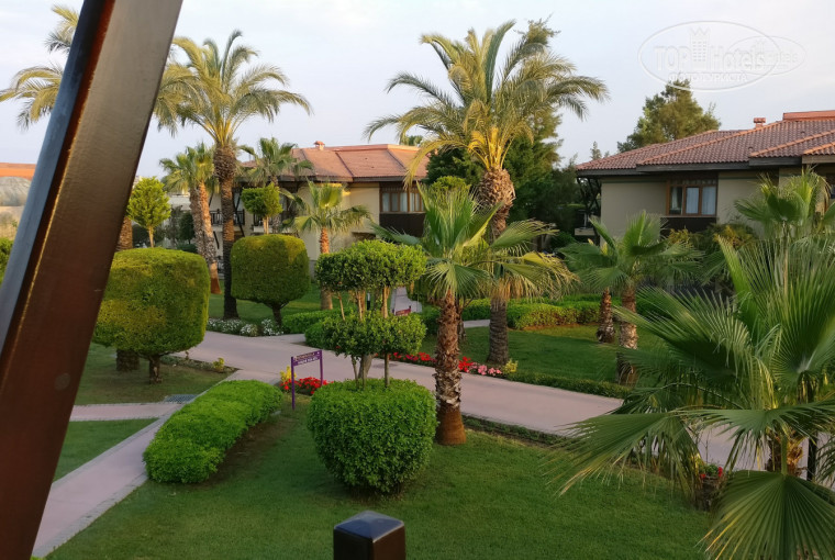 Территория красивейшая, ухожен каждый сантиметр почти ни единой лесницы нету, везде можно кататься на скейте и на роликах, и нигде вы не встретите препятствий, максимальная высота зданий 2 этажа.. это очень удобно, максимально быстрый доступ к номеру, тишина и комфорт, по утрам будило пение разнообразных птиц, они это делали словно по будильнику.