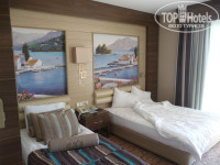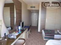 Прилетел в отель около 23ч заселили в номер на 2 этаже с видом на террасу лобби бара в левом корпусе.На следующий день после встречи с гидом(Бахтияр-приятный человек)попросил другой номер.Без проблем заселили на 4 этаже в левом корпусе №430 с видом на бассейны и море.Отель открыл сезон в конце апреля-народу по началу было примерно около 30% пляж большой,лежаков на всех хватит,заход в море-немного гальки а потом песок.Глубина уже через 2 метра,плавал с маской-стайки рыб у берега кому интересно.Питание хорошее хоть и обычное,всё вкусное и свежее,на обед и ужин мороженое без ограничений,официанты предлагают вино разное и пиво.В отеле система ULTRA ALL-напитки в лобби баре ипорт.производства,брал виски,ром,джин-всё отличного качества,вежливые бармены-наливают как попросишь до краёв :-))) Брал хаммам с масажем-понравилось.Рядом озеро-можно погулять вдоль него,и там-же магазины.У выхода отеля остановка откуда идут 2 автобуса до Манагавта и до исторического центра Сиде(конечная остановка)Там развалины древнего города и много лавок и кафе.На ужине работает гриль бар,делают очень вкусное мясо и рыбу.В целом отель для тихого и спокойного отдыха,в основном пожилые пары и семьи с детьми.