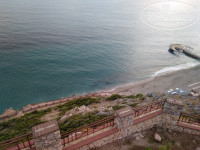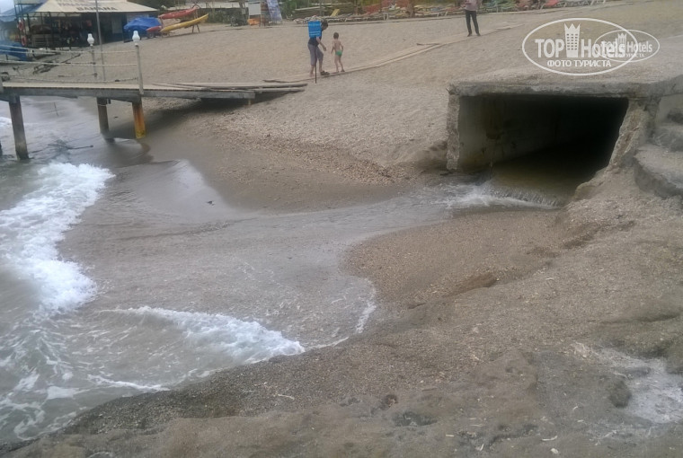 Заход в море с берега представляет небольшой расчищенный участок в который иногда что-то сливается из трубы (на фото). В этом месте море не очень чистое. Купаться лучше с пирса.