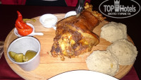 Были в пивной У Флеку.В зале было душно и очень шумно,перешли в террасу на улице. Там большие деревянные столы и лавки стоят под большими деревьями. Играют аккордеонисты,бегают официанты с кружками пива и рюмками Бехеровки.Народ заказывает Вепрево колено,утку,колбаски и другие вкусняшки.Мы заказали сырную намазку с луком и гренками и тёмное фирменное пиво,Было колоритно! Прикольно набдюдать.когда люди заказывают себе по блюду и им приносят огромные порции......