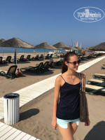 Отель красивый, современный, ухоженный, территория не большая, но зелёная. Приехали мы около 8 утра, нас сразу отправили на завтрак и буквально через пол часа дали номер. Номер с французским балконом, очень боялись когда его бронировали, но выйти постоять там можно, белье высушить тем более. У нас должен был быть вид на улицу, но дали с видом на море и бассейн. Анимация хорошая и что главное - не навязчивая! Питание шикарное. Завтрак каждый найдёт себе по вкусу. Омлеты, сосиски(куриные и говяжьи), супы, горячие блюда, мюсли, хлопья, свежевыжатый сок(апельсин или грейпфрут). Каждый день на обед и ужин несколько видов рыбы, птицы, мяса, разнообразные супы. На ужине всегда присутствуют морепродукты: королевские креветки, гребешки, осьминоги, а так же красная рыба. Есть детское питание в баночках и диетический стол очень разнообразный. Алкоголь в большинстве импортный, а вина местные. Снек-бары с курицей, гёзлиме, салатами, фруктами, работают с 12 до 16. А какую пиццу делают в печи, ммм:)) В 17-18:00 в лодке около бич-бара делают гриль-сандвичи. Весь персонал улыбчивый, приветливый, всегда подскажут, помогут. Пляж чистый, практически пустой всегда. На пирсе лежаки, столики, два холодильника с соками, водой и пивом, очень круто что там есть души, не нужно по песку бежать туда-обратно. В номерах хорошо убирают независимо от того оставляете вы чаевые или нет. После ужина приносят шоколадки в номер:) с полотенцами проблем не было. В общем все очень понравилось, если бы и хотели придраться - не к чему. Рекомендую данный отель!!