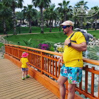 В Анталью ехали с АнексТур, до отеля микроавтобус домчал быстро, заезжали в три отеля по пути. Приехали в 12.00, заселить сразу не смогли, так как наплыв большой и горничные просто не успевали, сдали вещи на хранение и пошли осматривать территорию, ну и перекусить конечно же. Территория огромнейшая и красивая, а главное чистая, видно что персонал шуршит как пчелки. В 14.00 пришли на ресепшен, нам выдали ключи от нашего номера (POOL SUITE GROUND FLOOR) как и просил крайний, так как не очень хотелось чтобы перед окнами маячили люди в бассейне. На машинке быстро довезли до дверей номера, все показали и рассказали что и зачем в номере. Номер очень просторный, есть все что нужно: рыльно-мыльные разные (гели, шампуни, ушные палочки, пилочки для ногтей, бритвенные станки, щетки зубные с пастой, мочалки, шапочки для душа и т.д.), халаты, тапочки, сейф электронный, чайный набор, бар заполненный разными напитками (включая пивас), который пополнялся ежедневно без напоминаний. И самое главное в номере это выход к индивидуальному бассейну и террасу.