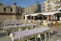 Отель находится на небольшой горе, территория огромная, все зеленое,в цветах, чисто и аккуратно, хочу подметить, виды со всех точек необыкновенные! Для деток детская комната, т к у нас с мужем есть ребенок, мы обязательно все это проверили на заметку, приветливые аниматоры играли с детками, по всюду был слышан детский смех, есть горки, у бассейна готовили вкусную пиццу (подмечу не кусок теста, а очень аппетитная пицца),а какие вкусные лепешки там "пальчики оближешь", мороженое на любой вкус.Про завтраки, обеды и ужины не буду писать много все было очень вкусно: большой выбор горячих блюд ,кто, что любит : рыба, мясо. индейка ,много гарниров, зелени,сладостей, фрукты, десертов огромное количество! Персонал приветливый, всегда улыбался, общался с гостями без напрягов, чувствуешь себя как дома. К ужину и обеду всегда приносили напитки: Красное или белое Вино, пиво, водка "раки" и еще что то было ,мы с мужем пили всегда Вино- напитки все хорошего качества!
