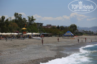 До моря возит автобус каждый час, водитель автобуса замечательный человек, всегда включал громко музыку, заводил весь автобус ,ехать до моря минут 5 и с таким задором было одно удовольствие и несколько не напрягало! Нооо можно и до моря дойти пешком, что МЫ с мужем часто и делали, идти минут 10,после вкусных завтраков и обедов нам было это даже в плюс. Пляж чисты, ухоженный, галька и мелкий песочек, нам с погодой повезло, на пляже есть бар,и красивая веранда для обедов(фото прилагается).Лежаков всем хватало! Многие я читала отзывы ниже пишут про горную речку , которая впадает в море рядом с пляжем, да она есть, мы до нее доходили, но она никак не мешала нам купаться. Были на море до самого победного конца.