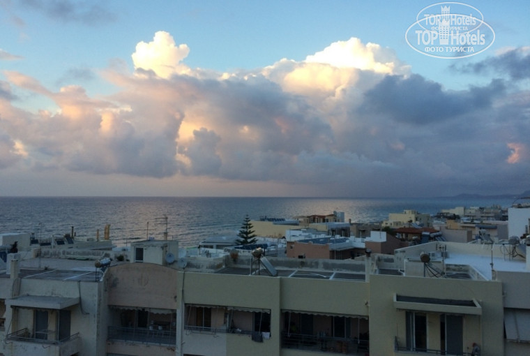 Отель – городской, находится в красивом курортном городке Ретимно, в минутах 2-3 от песчаного пляжа, минутах в 15 ходьбы от старого города. Вокруг множество магазинов (прямо напротив большой супермаркет), точек проката авто/ мопедов/ велосипедов, кафе и ресторанов, экскурсионных бюро. Единственный минус такого расположения – это шум проезжающих мимо автомобилей и музыка в кафе напротив. Естественно никакой собственной территории у отеля нет, только бассейн.