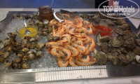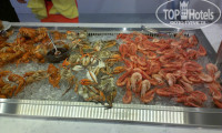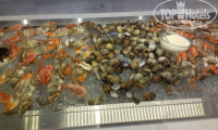 Отдельно нужно сказать о питании - такой новой и интересно концепции я ещё не видела. Заключается она в том, что завтрак и ужин, как обычно, шведский стол, а обед проходит не в основном ресторане, а на улице, где помимо блюд шведского стола присутствуют ещё что-то типа фургончиков и машинок с едой разных стран, которые работают каждый по своему расписанию, так что пообедать можно в любое удобное для вас время. Блюда все просто объеденье! Я, чего там греха таить, люблю вкусно покушать но даже для меня то изобилие вкусностей было даже слишком) хотелось всего попробовать, а желудок не резиновый) Постоянно мучилась при выборе) Авторское оформление блюд тоже заслуживает внимания, не просто навалено в посуде, а оригинально оформлено, как произведение художника) Я особенно наседала на красную рыбку по утрам, на морепродукты (большие креветки, крабы, устрицы, ракушки, раки) 2 вечера за мою неделю отдыха и постоянно много мяса, птицы и рыбы в любых вариациях! Из фруктов были клубника, черешня, киви, ананасы, арбузы, дыни, цитрусовые, виноград, яблоки-груши, бананы, мушмула, вроде всё припомнила... Овощи и зелень в изобилии! Наивкуснейшая выпечка! Натуральный мёд в сотах, домашнее масло, больше похожее на нежные взбитые сливки, а сколько десертов - море! в общем, о еде здесь можно говорит бесконечно! гурманам сюда!))) пишу и слюной обливаюсь - дома-то так не балуют) Напитков просто тьма, и алкогольных и без, утром свежевыжатый апельсиновый сок, или другие разные соки, но вроде как пакетированные. Кофе заварной фильтрованный. А ещё мороженное - полдня можно объедаться разными вкусами, какие хочешь! Я так много и вкусно никогда в жизни не ела, честное слово!) А ещё за день до моего отъезда начали предлагать услугу завтрака на симпатичном кораблике, вас увозят с 8 до 10 утра в море и там вы завтракаете и наслаждаетесь утренним морем и неповторимыми горными пейзажами Кемера!