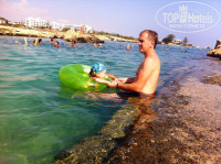 Всем здравствуйте , наверно мой отзыв позноват , но все равно напишу ! Отдыхали в этом отеле 29 авг - 5 сент 2016 года , нам все понравилось , выбрали его по отзывам , для меня самое важное было относительная близость к хорошему пляжу ну и приличный сервис по нашему бюджету , собираясь на Кипр мы понимали , что тут не будет такого сервиса как Турция или Египет , были к этому готовы ! По прибытию в отель сначала нас проводили в комтату для багажа и пригласили на обед , после обеда наш номер сразу был готов , как я и просила двухкомнатный с видом на море ! В номере была кухня , но мы ею не пользовались так как брали все включено ! Выбор еды не большой , но все необходимое есть , кроме супа и каш ((( мы наедались не меньше , чем в Турции )) Больше всего хочу отметить на завтрак очень вкусная глазунья и жареный бекон )) Сладости такие же как в Турции ( но примерно 2-4 вида ) , фрукты были дыни ( безвкусные ) , апельсины и арбусы ! Пиво вкусное слабенькое , очень понравился коктейль секс бич , муж пил более крепкие напитки , только положительные отзывы. Есть хороший бассейн , детская площадка ! В 7-10 мин от отеля есть несколько красивых бухт , больше всего понравилась та , что налево , лежаки платные 2.5 евро сутки , не очень удобно , но мы были в курсе и подготовились ! Море на Кипре шикарное , я была поражена этой красотой ! Для маленьких детей очень удобно , что довольно далеко мелко и почти не было волн , в отличие от Турции тут можно было не стоять рядом с ребенком , спокойно ее отпускали купаться около берега ! По вечерам 2 раза в неделю была живая музыка , а в остальные дни скучновато так как никакой анимации тут нет , но мы познакомились с парой и все вечера проводили вместе , стало веселее ) По отелю никаких нареканий сказать не могу , но недовольных туристов тут видела и ни одного , люди жаловались что нет шампуня в номере , нет фена , плохая еда ( хотя я привередлива и разборчива мне повторюсь она понравилась ) и что то еще , пластмассовые стулья в ресторане на улице , пластмассовые пепельницы , я считаю это простые придирки людей привыкших видимо к Египту и Турции , либо тех кто не читает отзывы при выборе отеля ! Персонал приветливый , читала много негатива тут в их сторону , люди может нужно почаще улыбаться и получите тоже самое в ответ ? Уборка в номере проходила примерно через день , оставляли по 2 евро чаевых для горничной . Хочу отметить Гида от Библио Глобус , о ней тут тоже много негатива читала , правда ! Врет просто в наглую , добраться самим никуда не сможете и тд , только берите у них эскурсии , даже про переходники обман , говорит покупайте в отеле , в магазине рядом они дороже , идем в магазин они там дешевле , ну и другие мелочи уже всего не вспомню . Купили билет на атракционы для дочки безлимит , она говорит зайдете в Луна парк и сразу будет сидеть администратор , ему билет отдадите , так вот мы замучились круги наматывать там и искать кому что отдавать , язык не знаем , по русски никто не понимает , оказалось эта кабинка с администратором находится в самом центре и не так просто ее найти ! В общем лучше спросить все у Работников бара , они вам лучше расскажут , чем эта гид , к сожалению имя не помню , худенькая со светлыми волосами . Брали на прокат велосипеды ( детские кресла есть ) 2 за 20 евро сутки и ездили на мыс Каво Греко и мост влюбленных , очень красиво , но тяжеловато пришлось так 