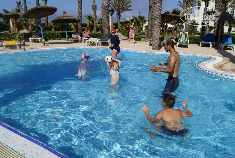 Только вернулись домой с отдыха, хочу отметить что это мой первый отзыв который я оставляю (до этого отдых был в Турции 5*, и Вьетнам), только потому что много приятных впечатлений. Отдыхала с мужем ,дочерью и мамой, познакомились с семьей из четырех человек и ездили на экскурсии вместе это город Тунис + зоопарк Фригия+Колизей+Монастир+Сус+Карфаген итого на дорогу около 5- 6 тыс рублей на семью!!!!(без тур оператора) тел водителя Aли (00216)98277338 или 20203824 понимает русский и разговаривает на 30%. Через день ездили на экскурсии покупки в городах есть фрукты и базар (торгуйтесь на 50%-60%) Остальное время проведенное в отеле просто ОТЛИЧНО!!!, питание на 4+, бар то что не круглосуточный на 4, Аниматоры на 5+++++++++. Много развлечений , спорта. танцев и позитива! По сравнению с Турцией дети всегда не только под присмотром на 2 часа , А их забирают аниматоры у родителей на все игры развлечения! Зарядка аква-айробика в море отдельно в бассейне фитнес степ . Танцы, настольный и большой тенис , гольфик и т.д. Даже если едешь один аниматоры всегда составят тебе компанию)) Чистейшие бассейны!!! Прекрасная территория. Море песочек мелкий развлечение каждый вечер (Работа аниматоров впечатлила особенно шоу Факир и Фаир шоу . Исключив минусы отеля ниже отель претендует на твердую 5 ! И еще в СПА дорого цены в 3 раз дороже чем в Турции!!! Уезжать не хотелось.... ТИТО Привет ! Благодарю за занятия и позитивчик ты сердце отеля !!!!! Вечером ветерочек (ветровочку или кофточку с длинным рукавом не помешает)