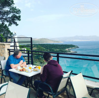 Очень люблю Грецию...особенно греческие острова...поэтому отдых получился замечательный,но восхищение мое скорее не к отелю,а острову Крит) итак отель Mistral Mare Hotel...выбор мой пал на данный отель,так как очень хотелось вид на роскошную бухту Мирабелла) Вид действительно хорош...отель расположен на горе,поэтому ресторан,бар,бассейны имеют этот замечательный вид...на этом на мой взгляд все хорошее заканчивается...номера отвратительные,совершенно не уютные,маленькие,ванная комната в отвратительном состоянии,полотенец вечно не докладывали ,из туалетных принадлежностей только жидкое мыло ((( 4*...на минуточку((( питание...ну не хорошо ,ни плохо...нормально...хотя это же Греция...а в Греции-моя любимая Средиземноморская кухня...вино,пиво-дрянь...лучше покупать в Маркете...водичку в номер не приносят...стоит кувшинчик на барной стойке) на мой вопрос-почему нет в номере воды,это же "олл инлюзив",хозяин показал на кувшинчик-пей)))) а так у него можно купить) что мы и делали) 4*!!!! интернет за денежки) 35 евриков за недельку) до моря идти по ступенькам...вниз легко и весело...назад-более проблематично,не курю,но в пути делала передышку...еще один момент...я конечно понимаю,что правила заезда-выезда,что Европа и так далее...но трансфер в аэропорт запаздывал,и хозяин не позволил нам выпить кофе из автомата...типа время ваше вышло-платите))) но мы и и заезжали позднее 14 часов,а точнее в 20) так что в первый день свой "олл инклюзив" не использовали ))) ну неужели так бы подорвали бы мы бизнес гостиницы этой несчастной чашкой кофе,тем более,что она уже была налита...не знаю вылил ли ее хозяин,или выпил сам?))) мне кажется,что гостей встречают и провожают по иному...кризис кризисом,но мы же ваши гости...можно было закрыть на чашку кофе глаза...а так впечатление о гостеприимстве было сильно смазано) отель ориентирован на русских туристов... теперь о хорошем...слева от отеля сдаются машины в аренду-вам туда) чудесный паренек,зовут его Маркос, прекрасно говорящий по русски предложит вам кучу вариантов авто,навигатор и несколько продуманных маршрутов,какое счастье иметь на Крите под попой машинку) у нас была Киа Пиканто,малюсенькая,кушает бензина мало,правда в горку тянет с трудом,зато с горки резво) за машинку я заплатила 70 евриков за два дня,но расставаться с машинкой мне не хотелось...продлевала аренду каждый день за 20 евриков в сутки) объехали весь остров,куча деревенек,пляжики...клубника в багажнике))) в общем Крит прекрасен,греки-чудные...а про отель-взвесьте все за и против...я не вернусь...хозяин жадноват)))