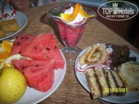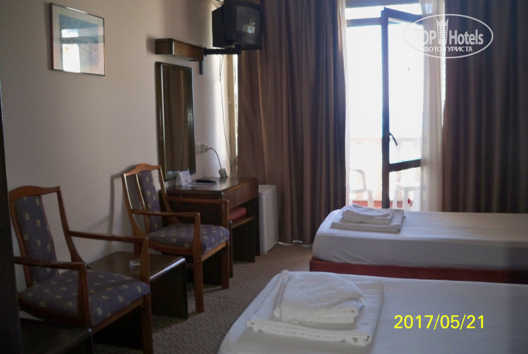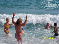 Вчера только вернулись с отдыха.Отдых понравился!Отдыхала с мужем.Минусов мы не искали!Единственное,что подпортило немного впечатление от отеля,на рецепшене-20 долларов за номер с видом на море.Но мы были к этому готовы,предварительно прочитав в прежних отзывах.Сторговались за 10 долларов+бутылка водки.И 2 доллара отдали носильщику,который провожал нас до номера.Приехали в отель в 11 часов.Заселили сразу же!Номер дали в корпусе А на 5 этаже.Просторный,а вид.....Это нечто!Прекрасное море,,,,,,,.)))))Персонал очень вежливый!Аниматоры-ребята-супер!Во время обеда обязательно подходили к каждому столику,интересовались,как дела,отдых?Информировали о предстоящем вечернем шоу.А развлекали как!!!!!!!!!!!МОЛОДЦЫ!!!Детишки в восторге от них,гурьбой всегда бегали вслед!Каждое утро гимнастика на пляже,пляжный воллейбол.Около бассейна днём всегда молодёжь тусовалась,игры,аквааэробика и т.д.)))))Питание-отличное.Мяса ,правда,не было.Но оно же такое дорогое в Турции!Нужно понимать!Курица на гриле,рыба постоянно.А сколько видов сыров!Овощей!Солений!Зелени!Салатов!А какой сладкий стол!!!!!!!!!!!!Огромное спасибо поварам!Из фруктов:мучмала,яблоки зелёные,жёлтые и красные.3 вида обалденных грейпфруктов!Апельсины,арбуз давали раз 5.Вообщем,голодными никто не оставался.Бар на пляже,многие и на обед не ходили.Картошку Фри прямо там жарили и котлетки(соевые ,правда).Зелени много,помидора,огурцы и т.д.В кофемашинах-очень вкусное кофе несколько видов и горячий шоколад вкусный!Автоматы с напитками (кола,фанта и т.д) во всех барах.Вода в кулерах....Вообщем,всё включено!Очень доброжелательное отношение всего персонала!Спасибо им огромное!)))Горничные-молодцы.Запасы шампуня,мыла всегда пополнялись!))))Пляж....Места всем хватало!Просторный,чистый.С утра приходишь,песочек возле шезлонгов разровнен,шезлонги аккуратно расставлены.)))Но,единственный минус-не понравились плиты в море.Море постоянно с волнами.Из 14 дней-один день только спокойное было!Но присноровились,выбирали момент,подальше от берега отплываешь и там уже спокойнее.Я купила себе пенопластовый круг и спокойно доплывала до буйков!Отдельное спасибо работнику пляжа,он же спасатель(к,сожалению,не спросила имя!)за помощь в обработке ран.Муж несколько раз о камни ранил пальцы ног.)))Весь персонал прекрасно понимают русский язык.В отеле отдыхали белорусы,украинцы,эстонцы,латыши,поляки,но большинство русские.))))Понравился сам городок!Современные дома,не похожие друг на друга.Спокойно гуляли по вечерам.Местное население очень доброжелательное,многие разговаривают на русском .Товар покупать выгоднее в лирах.))))Из 14 дней один день был дождь,а остальные дни ясные,солнце жарганит!Море тёплое.