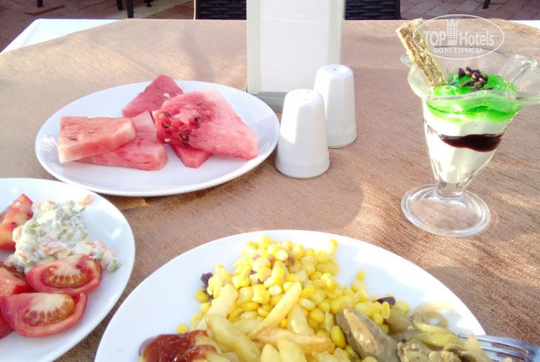 Постараюсь написать объективно про отель! Заселение прошло в течение час-полтора. Категорически не понравилось поведение на ресепшен, просто вымогают очень неприятным образом оплатить деньги за номер по лучше! Я платить не стала. Номер получила с ковром с подтеками и очень не качественной уборкой! Смеситель работал с трудом, на просьбу починить смеситель ни на респшен не откликнулись, ни заявка через гида тоже не была рассмотрена!Не стала больше по этому поводу расстраиваться, потому как это бы испортило настроение на весь отдых. Что касается питания: много овощей, зелени, остальное все скудненько, даже мне женщине было голодновато. Про спиртное: вино не понравилось, более менее можно было выпить коктейль и пиво не плохое. Отель больше подходит для семей с детьми(их там было очень много), молодежи там будет скучно, никаких особых развлекательных мероприятий типа дискотека и т.д нет, возят на дискотеку в Аланью за деньги. Теперь о природе: это то, ради чего можно было забыть все недочеты этого отеля, красивейшая природа в Махмутларе, с одной стороны горы, с другой- море, отличный воздух, красивая набережная! Море очень красивое. Есть тут минусы, каменистое дно на пляже, и часто бывают волны, если ехать с детьми, то немного опасно, без тапочек от кораллов там делать нечего, я и моя знакомая поранили ноги о камни во время волны. Что еще порадовало, недалеко от отеля познакомилась с ребятами из агенства "Туры от Алика". Взяла у них три экскурсии и была в большом восторге!!!!Есть что теперь рассказать о поездке!Прекрасные ребята, чувствуешь себя как дома, без чашки чая не отпустят, все подробно расскажут и посоветуют! Ну а что касается отеля-то точно не буду его рекомендовать!