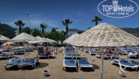 Пляж находится буквально в 200 м от отеля. Полотенец нет, надо брать с собой. Бара тоже. Вход в море очень мелкий. С детишками хорошо, а вот взрослым засада. Также на нём расположена станция водных развлечений. Соответственно панорамный вид не очень, да и соляркой иногда попахивает.