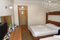 Отель на свои 4+, как заявляет туроператор Пегас, который его продаёт, не тянет. Я бы поставил 3+. Прежде всего подводит питание - оно довольно скудное и однообразное. Настоящего мяса нет вообще, только какие-то котлетки из фарша. Рыбу дают, но она ужасно приготовлена. Выручает курица, её готовят в разных вариантах довольно неплохо. Из фруктов были только яблоки, апельсины и жёсткие абрикосы. С сладостями тоже напряжёнка. Белое, красное, иногда розовое вино наливают из бутылок. Вкус на троечку. Пиво, как обычно в Турции, слабое. Чай, кофе, напитки можно попить из автоматов. Качество нормальное.