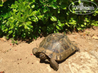 3. Территория отеля. Территория отеля небольшая, но зеленая и ухоженная, много разнообразной зелени, растений, деревьев, все цветет и пахнет. А еще очень много кошек. Сильно голодных. Так что не забывайте их подкармливать в рестике всегда можно взять мясо-рыбу-ветчину, а вообще они едят все. Особенно голодные те, кто живет в садике около домика персонала (выходим на улицу через ресепшен, поднимаемся в арку, говорим кис-кис-кис, спускаемся по лестнице к прудику и наслаждаемся обществом 3-8 очень худых и голодных котеек). Там же, около прудика, можно встретить черепах (видели побольше и поменьше) и отведать шелковицы прямо с куста.