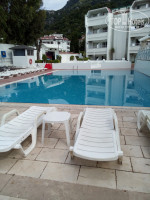под названием Ичмелер, как нам потом сказал гид наш город является мини рублевкой по отношением к другим городам.По приезду нас сразу накормили и в течении 30 минут расселили. В путевки у нас номер был заявлен как Промо-Рум, но на удивление нам достался шикарный номер с видом на горы и на сцену, так что нам даже порой не нужно было спускаться чтобы посмотреть вечернюю шоу программу. В номере было три кровати односпальных, холодильник, кондей. Смена полотенец и белья была каждый день, мы оставляли пару лир, но на качество уборки это не отражалось. Что касается самого номера , советую брать над баром, так как всего номеров в здании 7,а напротив нашего корпуса в районе 100. По поводу питания было каждый день всего много, но опять же однообразно, мясо в основном соевое и только на улице перед столиками бывало жарили натуральное. Питание 6 разовое. Как было заявлено у этого отеля есть несколько корпусов мы жили во втором.Время до моря занимало минут 5-7, смотря как пойдешь. Само море очень выглядит красиво, а пейзажи чаруют. Два раза брали экскурсии на Эгейские острова и на пиратский корабль с пенной вечеринкой и там и там все понравилось. Советую покупать не на центральной улице так как там дорого а неподалеку от центра Ичмелера. Нам на троих обошлось в 150 лир на пиратский корабль. С 21.00- 21.30 проходит детская дискотека, аниматор Татьяна их проводит очень профессионально. Каждый день, после детской дискотеки проводят конкурсы приезжают артисты, и так до 23.00. С 23.00 кто хочет едет бесплатный автобус до центра Мармариса на Улицу Баров, ездили пару раз очень советую посетить клуб Арена. В целом впечатлений масса!!! Такой отдых подойдет как и молодым так и семейным парам.