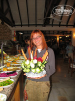 ВСЕ ОЧЕНЬ ПОНРАВИЛОСЬ!!! Ездили с подругой в апреле. Территория отеля достаточно большая. Думали будет холодное море, ан нет! Погода приятно порадовала. Заселили сразу. Номер хороший. Замена постельного белья через 2 дня, полотенца каждый день. Кормят вкусно и много. Питание разнообразно. Из мяса было: рыба, курица (почти каждый день), говядина, баранина. Фрукты только появлялись. Сладкое тоже порадовало. Днем возле бассейна можно перекусить жареными сырными лепешками и пиццей, а также ледяным пивом! Безумно вкусно!