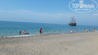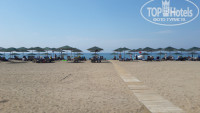 Что касается моря, оно прекрасно! Чистое, спокойное, правда прохладное в это время года (около 22 градусов), широкая береговая линия, песочек, ближе ко входу мелкая галька, достаточно бысто идет глубина и пресловутые каменные плиты. Лично нас нисколечки не напрягавшие, но, возможно, для деток постарше могут быть вопросы. Очень понравились шезлонги и зонты, качественные и монолитные. Правда, под конец нашего отдыха их резко стало не хватать, возможно, заехало много русских хитрецов, кидавших ранним утром свои полотенца на лежаки и тем самым "забивавших" их на сутки(