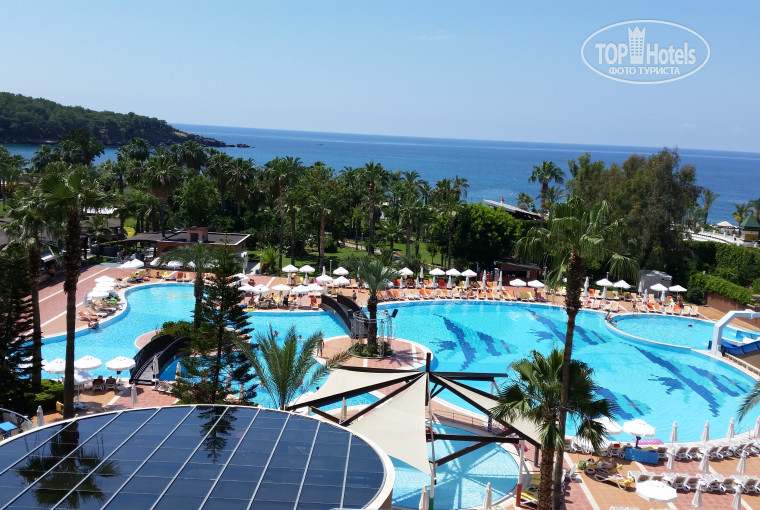 Отдыхали семь ночей с подругой. Номер бронировали и оплачивали с видом на море. Тур от Библио Глобус, в Турции был Fit Holidays. Вылет Россией по расписанию. Удивило, что стойка Fit Holidays, для того что бы узнать номер автобуса, была всего одна, соответственно к ней пришлось стоять в очереди. Ехали 2 часа с перерывом в 20 мин. Приехали в отель в начале 12-го. Нас очень радушно встретили, предложили напитки и два номера на выбор. Номер стандартный, с двумя кроватями, в душе немного подтекал кран. Проблема была только с феном, т.к. он две минуты работал, на четыре отключался, раздражало жутко. Уборка средняя, для семи дней не критично. НО... постельное белье не поменяли ни разу. Полотенца меняли, но они часто попадались с дырочками или пятнышками....На чай оставляли регулярно-на качество уборки это ни коим образом не влияет. Средства личной гигиены были, тапочки принесли на следующий день. Никаких халатов не было-видимо они на вес золота.