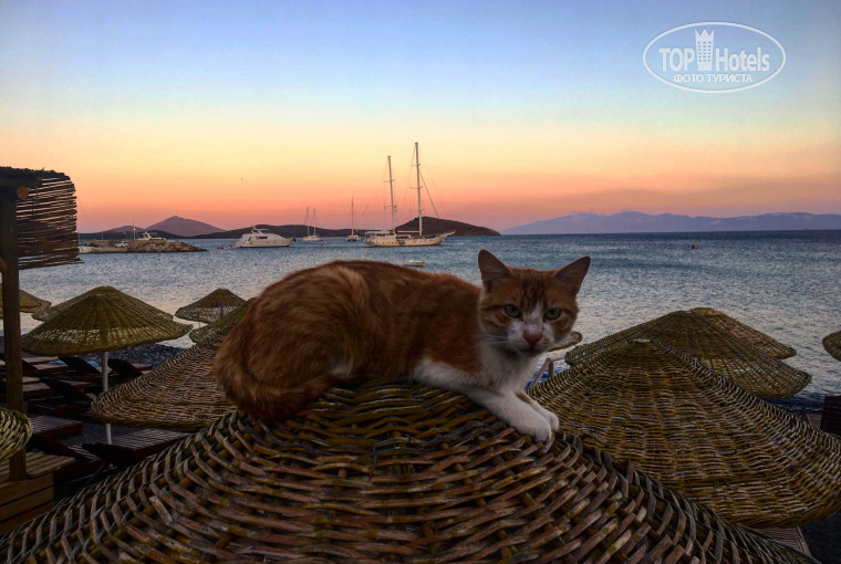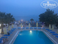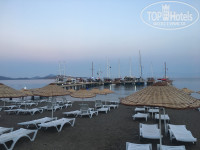 Отель в целом неплохой, есть свои плюсы и минусы! Отдыхали с подругой и Ее ребёнком с 03.06-13.06! Два дня потеряли, так как сутки добирались первый день приехали уже была ночь, и уезжали обратно в три ночи, тупо сгорели два дня, летали туроператором SanMar! По приезду в отель нам не предложили ужина или сухого пайка, по отъезду мы попросили сухой паёк, дали бутерброд он был- никакой! По отзывам читали что мало русских, ничего подобного отель был забит русскими... Сразу скажу отель на 4 звезды не тянет: анимации никакой в отеле нет, ходят 5 человек турков ни один не понимает на русском, такое чувство что просто отдыхают, чёт там на своём перед обедом поболтают и всё, для детей ничего не было, кроме вечерней дискотеки которая была из 4 песен, для взрослых было из 10 дней отдыха- 4 раза анимация из приезжих по 15 минут (танец живота, караоке и шоу с огнём, и микс танцев). Еда в отеле, разнообразия большого не было, курица и все, рыба была вкусная была раза 4, из фруктов были каждый день яблоки и апельсины, и по вечерам только радовали арбузами, чему мы крайне радовались, было разрешено выносить еду в номера, но особо выносить и нечего было, конечно мы не были голодны все эти дни! Территория отеля компактная, ухоженная, чистая, вся в цветах и растениях, изначально кажется что места много! Пляж близко, чистый, песок и галька, дают полотенца, с лежаками проблем нет, Эгейское море бодрящее, чистейшее, местные жители говорят и в августе оно бодрит, на пляже бара нет, но можно носить из отеля! Три бассейна: один центральный, второй с горками, третий совсем для карапузов. Отдельно хочу сказать про персонал отеля, в принципе народ доброжелательный, улыбчивый, но мало кто понимает на русском, есть один кто понимает на русском звали его Орхан, он видимо этим и выделялся, со всеми знакомился, просил чаевые, те кто давали облизывал их и подносил им все, те кто не давали чаевые и хотели получить от заявленного отеля «аll inclusive» были у него на контроле, он контролировал, что ты пьёшь и кто тебе наливает, в баре постоянно не было виски, за Коктейль Мохито просили 5 $, когда попросили прайс на коктейли, его не нашлось! Так же хочу заметить, что Орхан неуважительно и некорректно вёл себя с русскими девушками, унижал, мог наорать, или просто послать куда подальше! В целом отдых не плохой, Бодрум очень понравился, отель так себе, один плюс на первой береговой линии и что порадовало мороженное которое давали детям в неограниченном количестве.