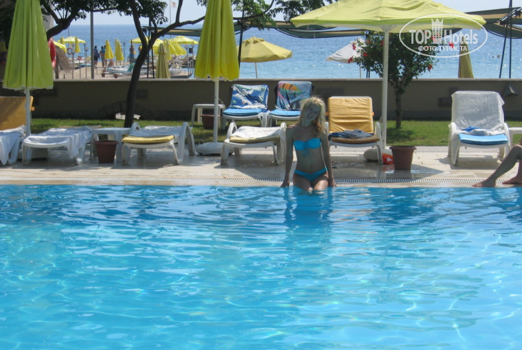 Отель мне очень понравился и даже долгая дорога до него сильно не утомляла (автобусы комфортные, работал кондюшник, вид прекрасный). В отеле всё просто замечательно, единственное только кондиционирование скверное, потому как центральное, им индивидуальные нужно закупать. Персонал доброжелательный, питание хорошее (разнообразное, но морепродуктов вообще нет), фруктов море, правда какие-то зелёные. Очень понравилась анимация, не дадут скучать ни взрослым ни детям. Море тёплое, правда, грязноватое. Пляж галечный. Зонтиков и жезлонгов всегда хватало на всех. Хороший отель, очень советую.