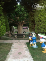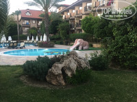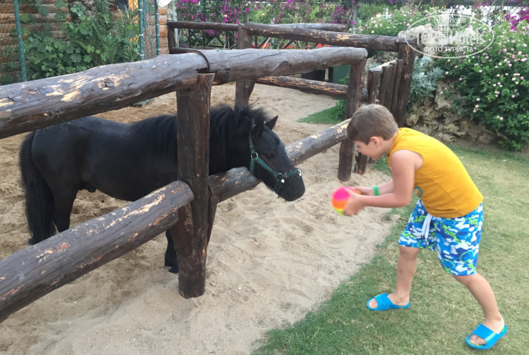 Территория- ухоженная , вся в цветах, детская площадка - деревня смурфиков, зоопарк- кролики, куры, павлин, пеликан, фламинго, утки, коты и тд.2 взр бассейна и 2 детских. На главном бассейне горки 4 шт и анимация с 10 до 17. Музыка, поло, водн гимнастика. На др бассейне тишина и покой, кому не нравиться шум и гам.