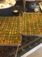 Котлеты, тушеное мясо с овощами. Гарниры - рис, макароны, картофель фри, картофель по деревенски, пюре. Много салатов, овощей, сыров, колбас, пирожные, торты. Клубника. Утром йогурты, яйца в разных вариациях, панкейки, круасаны, хлопья разные, сухофрукты, варенья, фри карт. Супы у них иногда не очень вкусные, нутовый, кукурузный, картофельный, томатный, куриный. Пицца.