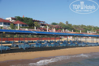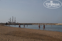 До пляжа идти можно 2-мя путями. Туда ходили через ресепшен по красивой дороге, обратно, в основном, по нижней. Расстояние 460метров, а не 250, как в описании(по утрам бегал по променаду с GPS трекером), но эти 460м проходишь на одном дыхании, как 250. Пляж классный, лежаков много, матрасы есть. Не понравился только заход в море-долго до глубины, да сказывается присутствие речки рядом-бывает пена. Для детей и пенсионеров-самое то. Мы ходили на право минут 15, до бетонного пирса-волнореза, там пустынные чистейшие пляжи закрытых отелей и наверное городские платные пляжи, в общем народу -НИКОГО!!! С моста через речку каждое утро с 7 до 8 можно покормить больших морских черепах и рыб. Один раз было аж 13 штук!