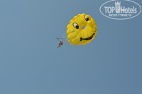 Пляж. До пляжа минут 5 ходьбы. Напрягало если честно. Дорога без навеса, жарит солнышко. Дорога вдоль озера. Озеро чистое, в нем краба видели.И при нас в нем электрокар утопили. Пляж чистый. Где жезлонги песок, вход в море галька. Берег крутоват. С детьми неудобно. Вода в море не всегда теплая была., но чистейшая. После бассейнов море у детей не катировалось. Летали на парашютах. Разок попробовать можно. В баре соседнего отеля первокласссный айран. Советую.
