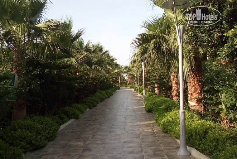 Начнём с того что мы прилетели 6 июня. В отель приехали около 7 утра. Нас сразу на ресепшене встретил мужнина ( позже мы узнали что это был управляющий отелем Ибрагим). Сдали все документы для оформления номеров, и нас сразу же проводили на завтрак, т.к время завтрака уже началось. После завтрака мы сразу же были заселены в номер не дожидаясь времени заселения согласно регламента отеля. (14 00). В этом огромное спасибо Ибрагиму. Нас это даже вполне устроило т.к мы были с маленькими детьми. Номер нам предоставили с видом на море. Красота неописуемая. Номер убирали ежедневно, мини бар пополняли каждый день также как и мыльные принадлежности. Побрасав чемоданы мы сразу отправились знакомится с территорией. Территория огромная очень много насаждений, цветов. Пляж находится метров 300-400 метров от отеля, но это не мешало а наоборот радовало что можно прогулятся после плотных обедов и ужинов. Питание однотипное. Но голодными не были всегда было что поесть. Конечно нехватоло русского борща но похлебать было что. Мне очень понравился турецкий суп.