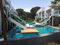 5. Детский клуб: в детском клубе тоже все организованно, детки под запись и с браслетами. Над клубом классная площадка с мини-батутом, в самом клубе лабиринт с батутом, настольные игры, комнаты для малышей с мамами, много интересных игрушек-развивалок и машин-каталок. Впервые увидела на пляже и возле басейнов люлечки-колыбельки для самых маленьких, это так удобно мамам, респект Вам. По вечерам, после мини диско был еще просмотр мультиков на большом экране. Детки много времени проводили на улице за квестами и играми, был детский и взрослый футбол и водное поло. Единственное, в клубе специфический запах, он не резкий, но чувствовался, видимо от моющих средств.
