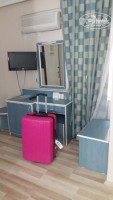 Заселили быстро, номер хороший. С едой беда. Если бы я привезла туда мужчину, он бы умер с голоду. Мяса нет, мелко нарезанная курица иногда мелькала. Очень радовала колбаса нарезанная мелкой соломкой для бутербродов. Такого я ещё не видела)))) зелени много, кто веган, тому хорошо. Мужики ели много хлеба, чтоб хоть чем то набить живот. Если опаздал, ходи голодный или как делали многие, магазины рядом. Алкоголь - пиво, джин, вино, водка, выдаётся маленькими порциями и нехотя. Люди сами покупали алкоголь и спокойно пили. Море рядом, к нему претензии нет - шумит и радует. Wi-Fi платный!!!! Вот это полная жесть! Спасала анимация! Ребята молодцы! Костя очень внимателен к детям - и танцам научит, разговорит тех кто стесняется, повеселит, водой напоит. Юля - была мой личной отрадой! За свои деньги купила и краски и кисти, чтоб детки могли рисовать. Странно, почему руководство отеля не может выделить деньги на такую нужду! Ребята всегда приветливы, улыбаются, интересуются как дела. Проводят конкурсы. Им 5! Вечером трансфер бесплатный на дискотеку. Вот и все развлечения. Детям там скучно конечно -