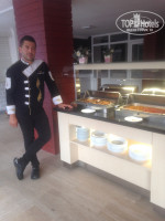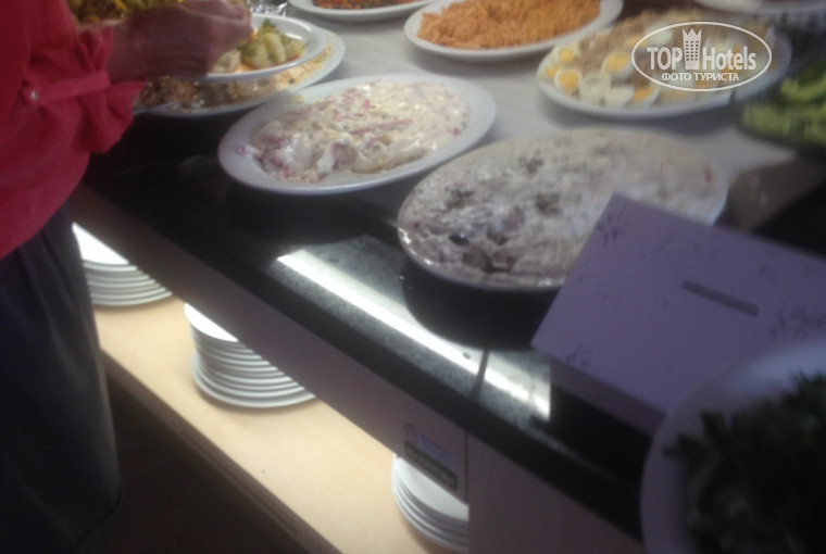 Здравствуйте !!! Отдыхала в этом отеле с 12 июня по 19 июня 2017!!! прилетела одна , но отель настольно комфортный и уютный и весёлый, что уже в этот же вечер была окружена в хорошей компанией . Заселил меня директор отеля в трёхкомнатный номер на 4 - ом этаже !!!! Очень большом и чистом номере я только спала при чем как у себя дома в комфорте !!! Еда в отеле обычная для тройки , овощи запечные и овощи гриль, много салатов , нет мяса .,но была курица и рыба один раз гриль , всегда был вкусный арбуз , ещё мне нравился супчик -пюре томатный.Наедалась и объедалась до отвала )))) сладкого почти нет ( бар работал с 10 до 22.00 , вино белое и пиво очень вкусные ! Коктейлей нет ни каких , но нам хватало вина ))) многим нравилось и красное винао . Водка есть русская и их местная раки , ни то ни другое не пробовала , многие говорили что раки невкусная . Персонал дружелюбный и отзывчивый !!! Уборка каждый день , женщина которая убирала русскоговорящяя в первый день мне с удовольствием объяснила как дойти до Базара с фруктами . Но самое главное это Море 🌊 оно необыкновенно тёплое и ласковое , мы ходили на пляж Роял Бич , заход с песочкем и прозрачная чистая вода , на пляже бесплатно лежак и зонтик( вай фай если в баре купишь мороженое тоже подключат ).,полотенца нет . Ещё рядом старый город , античный с развалинами , там же на набережной кафешки и рестораны и клуб Карма крутой !!!! Нам очень там нравилось. Вообщем отдых удался и благодаря хорошему сервису в отеле , спасибо директору , мы даже и не обращали внимание , что до моря идти 30 минут . Автобус утром в 10 утра возит до моря ., обратно в три или четыре дня неудобное время , мы постоянно ходили пешком обратно в 12 дня чтоб успеть к 12.30 на обед , ужин в 19.00 а завтрак с 8 до 10 )))) хорошего вам всем отдыха !!!! Советую этот отель если вас только не смущает идти до Моря 30 минут .