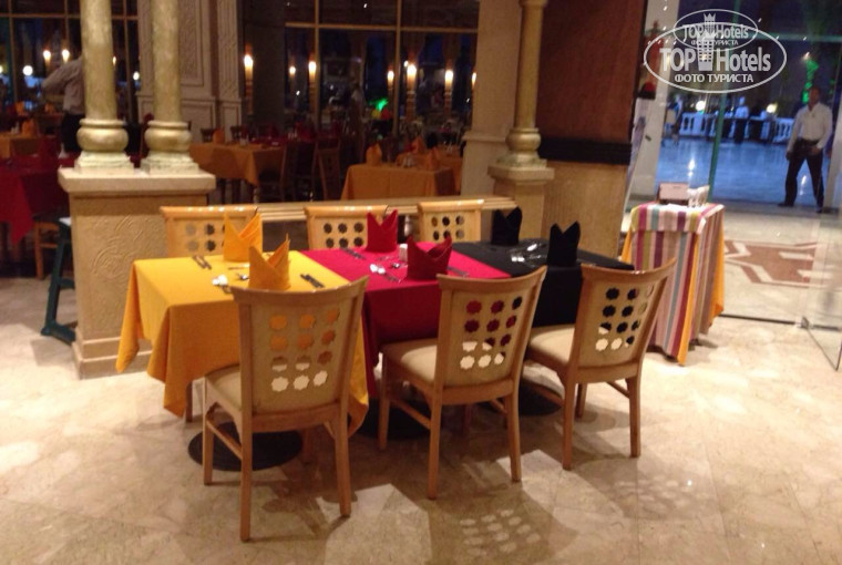 Питание - про обеды ничего не скажу, так как обедать ходили только в ресторан на пляже ( всегда в обед пицца, паста, рис, мясо, супы, фрукты, делают салаты, делают сэндвичи, запеченая картошка, в общем все что нужно покушать есть). На завтрак - рисовый пудинг, множество мюслей, омлеты, яичница, просто яйца, сыры, колбасы, овощи, блинчики, круасаны , пончики, в общем все отлично. На ужины - на улице на гриле делают и крабов, и мидии были, и мясо, и печень, также на улице режут фрукты. В ресторане же - также огромный выбор, перечислять не стану. Но есть все что хотите. Кстати для тех кому мало - можете сходить еще в соседний отель Sentido Mamluk и покушать там, питание и бары все общее у них.