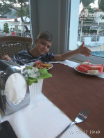 Летали семьей муж двое детей 8 лет и 9 месяцев и мама, бронировала тур самостоятельно на 10 ночей, цена 81000, номер был Family. Итак летали как и все Пегасом, отправляет в отель только он, авиаперевозчик Уральские авиалинии, минус перелетов в том, что вылет был 15.15 из Москвы и в отеле были около 23, обратно вылет 7.55 из отеля забрали 2.40, рейс задержали на час. При заселении многих людей у кого была бронь на стандарт, заселяли в промо, со словами утром подойдете переселим), заселение было 25 человек и большинству дали не те номера которые были забронированы, скорее всего это было связано с тем, что бы потом с благодарностью люди подходили) т.к. переселение было до 3-х дней (общались с туристами), наверное это минус, но нас не коснулась. НОМЕР не смотря на то, что он семейный очень маленький, не смотря на то, что он двухкомнатный, всего 2 маленьких шкафа без полок но с кучей вешалок шкафа, не все вещи особенно малышки можно повесить, кафель на полу (очень и очень грязный) тоже для ребенка не плюс, но она у нас там и не ходила, в номере только спала. Холодильник маленький и не морозил совсем, брали питание с собой переживали, что испортится, ключ не вынимали, что бы постоянно холодильник работал. ЕДА конечно желает оставлять лучшего, голодными не были, но завтраки совсем уж плохие (яйца вареные, яичница (готовят на улице) колбасятина их (мы ее вообще не ели), мюсли, хлопья, овощи (помидоры, огурцы, салат, капуста), грибы, но с утра они не шли как-то), хлебушек (в тостер и с медом нямки) и каша рисовая, была пару раз кислая(. Но кофе с аппарата конечно плюс. В обед и ужин наедались и выбор был и вкусненько. Очередей не было, это плюс маленьких отелей. Персонал отеля весь очень уважительный и внимательный. Кстати мини-диско проходит в Территория отеля нам понравилось, маленькая, но уютная, домашняя такая, на территории 3 бассейна 3 бара, напитки: пиво, коктели, раки, минус маленькие стаканчики. До море идти 3 минуты, нас не напрягала прогулка, пляж песочек, вход отличный и очень теплое море, да мелко, но для детей это хорошо, но если уйти левее там можно и поплавать. Полотенец нет, мы брали из номера, попросили уборщицу дать нам дополнительные полотенца. Ходили с мамой в СПА при отеле, очень понравилось, спасибо. Ездили в Мармарис на маршрутке, проезд 1 $ или 3 лиры, что значительно дешевле, вообще цены все в лирах, поэтому мы меняли доллары на лиры, на будущее учтем, будем сразу лиры брать и удобнее и дешевле. В целом и отель оставил положительные эмоции, мы ехали не минусы искать, поэтому всем остались довольны. Природа просто шикарная. Если есть вопросы, задавайте отвечу.