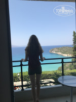 Приехали в отель около в 8 утра. На ресепшене встретил ночной администратор. Объяснил про время заселения, где можно оставить багаж( Камера хранения на -1 этаже,но можно оставить и в холле). После этого купили ваучеры на завтрак(5 евро на человека). Завтрак порадовал обилием и разнообразием. После завтрака прогулялись по территории отеля,а в 9:30 были приятно удивлены готовым номером и заселением. Номер изначально оплачивали с видом на море-вид потрясающий в любое время суток. В номере стандарт нас ждала двуспальная кровать и кровать-манеж для ребёнка( отдыхаю с двумя детьми 15 лет и 6 месяцев). Номер находится на первом этаже,где проходит путь в золотое крыло,поэтому проходимость большая,а шумоизоляция слабая. В следующий раз,когда вернёмся,будем брать второй или третий этаж. Далее нас ждала встреча с пляжем,куда мы пошли по пологому спуску,но ребёнка посадила в рюкзак. Коляску брать сразу не рискнули. В последующие дни ходили там же,но уже с коляской. У нас коляска-трость,едет вполне себе нормально,но скрипеть начала с первой прогулки-дорога не идеально ровная. Нас это не смущает,но коляска yo-yo,возможно,будет себя чувствовать здесь не комфортно)) . Теперь что касается в принципе еды и персонала. Персонал Весь очень приветливый и доброжелательный. На ресепшене всегда присутствуют администраторы( все русскоговорящие),но наше сердце покорила Лайна. Приветлива,отзывчива,всегда доброжелательна, подскажет и расскажет где,что и куда.