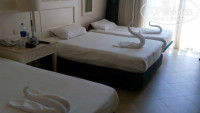 Заселение.Мы прилетели поздно вечером, помня из отзывов, что отель не полностью загружен, попросила номер с балконом ( у нас был промо).Дали нам без доплат фемели рум номер 2202, балкон оказался номинальным, сантиметров 20 в ширину))Но зато номер с удобным расположением, близко к лестнице в столовую и наверх к бассейну.Кстати, около номера берет вайфай и иногда в туалете номера.Номер просторный, светлый, три кровати, чистое постельное, но грязные полы, пришлось ноги дважды перемывать.Убирали кстати так же,полы мыли постольку поскольку, пыль не вытиралась, но в ванной чисто и лебеди накручены были)) В комнате есть чайник, чай, сахар.Нам принесли три тарелки с бутербродами и фрукты.Ванная комната с ванной, а не с душевой кабиной, есть биде, фен работает хорошо, дозаторы с гелем.Очень неудобно, что не продуман момент с сушкой белья.Я у своих соседей напротив увидела такую деревянную лесенку на балконе для сушки, попросила ее и нам на балкон.Мне сказали, что не знают, что это такое.Я говорю, завтра сфоткаю и принесу.Тогда начали говорить, что это для специальных гостей.В общем, выяснять кто такие эти специальные гости и чем мы от них отличаемся, настроения не было.Я просто расстелила полотенце на балконе и на нем сушила.