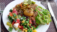 Вывод- кухней в общем и целом я довольна, вкусно,голодными не были.Спрашивала у местных, почему в отзывах пишут о большем выборе еще месяц назад, сказали, Рамадан, всех отпускают домой, шефповар тоже уезжал.Но это расслабление не только по кухне видно, а везде по отелю)) То молоко для коктейлей на баре закончилось, то туалетной бумаги два дня подряд в туалете на пляже нет.