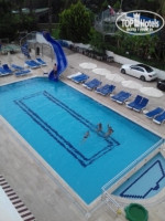 Территория: не большая, но уютная и зеленая, есть бассейн с водной горкой. Есть стандартная турецкая баня за 25 долларов, в хамам можно ходить самим бесплатно.
