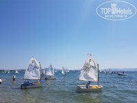 с 18 по 21 июня в отеле проводились соревнования по детскому парусному спорту - детей приехало очень много, было шумновато, но вполне терпимо-на пляже детей не было, в ресторан они приходили как-то по времени. Так что ужасы про "пионер-лагерь в отеле" преувеличены.