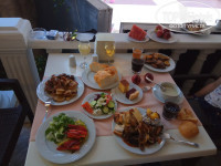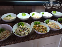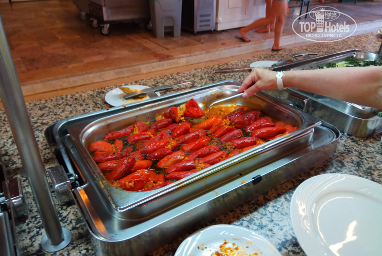 3. Питание. Для отеля 4 * и той суммы , которую мы заплати- вполне нормальное. На завтрак всегда жарили яйца , были сыры ,овощи, йогурты, картофель, каши, булочки, джемы. Не хватало только блинчиков. За семь дней не было ни разу. На обед мало мяса, один вид тушеного и котлеты( которые явно нужно убрать из меню). Но голодными мы не были. Очень нравилось обедать в баре на пляже. Там готовили вкусную тушёную печенку плюс лепёшки. Овощи, фри, макароны, суп- тоже все было. Ужин конечно намного лучше. За семь дней была форель, куриный шашлык, индейка на гриле. Всегда тушёная курица и запечённая рыба. Нам нравилось. На ужин мороженое, за которым очередь,но через час его можно было взять без проблем. Алкоголь тоже нормальный. Мне понравилось белое вино. Муж пил виски.
