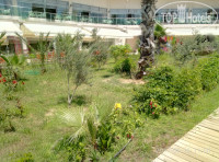 Территория нормальная, кусты, немного цветов, но цветут, каждый день их поливали, озеленение территории для мне это не очень важно...пишут про мусор, опять же сами отдыхающие разбрасывают стаканы разовые, салфетки, видела что их убирали, но за дикарями нужно убирать каждую минуту...