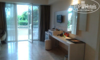 Из-за задержки рейса в отель прибыли уже в 23.50. Размещают быстро. Но вот здесь первый минус. У нас большая компания. Требовалось 3 номера. Друзья 2 взр. + 2 детей получили шикарный номер в корпусе А. Я ехала с дочкой 13 лет - у меня был заказан стандарт. И у подруги (она с сыном 16 лет) -соответственно тоже стандарт. Нам объяснили, что стандартов нет и предложили шикарный двухэтажный номер с двумя санузлами на верхнем этаже в корпусе А. Вроде выполнены все пожелания: мы хотели хороший вид из номера и быть поближе друг с другом. Но не настолько же поближе. Номер просто шикарный, но отсутствуют двери на втором этаже. Чувствуешь себя не слишком комфортно с чужими людьми на одной территории. Нашу проблему решили на следующий день. Именно тогда мы познакомились с большим количеством постояльцев, которые решали ту же проблему - нехватка стандартов. Не у всех получалось сразу. Кого-то переселяли на 3-4 день. Большой плюс: в первый же день у нас появилось много знакомых. Так что имейте ввиду: если вы едете в сезон ( как мы) и вас двое, будьте готовы, что номер получите не самый удачный. Все шикарные номера с хорошим видом и расположением рассчитаны на 3 и больше человек. Семейные номера действительно шикарные. Зато стандарты мы видели очень неудачно расположенные. Да и размеры некоторых "впечатлили". У моей подруги сын очень высокий, так они долго решали где ему ложиться спать. Если возле окна - перекрыт выход на балкон. Если с другого краю - не пройти в туалет. Они жили на вилле номер 1325 первый этаж. Я жила в корпусе Д на нулевом этаже 1806. Номер большой, единственный минус это то, что в нем стоял единственный небольшой шкаф, большую часть которого занимал платный сейф и стопка теплых одеял и дополнительных подушек. Полки для того, чтобы разложить вещи, отсутствуют вообще. Спать при открытых дверях нельзя, номер напротив амфитеатра и возле ночного бара. Поэтому очень шумно. (это для тех, кто с маленькими детьми)