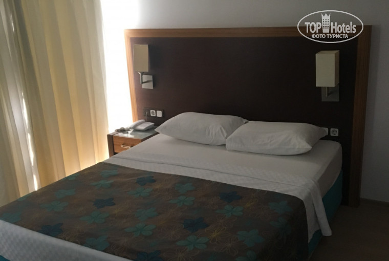Уверенная и смелая троечка отелю! Закрыть глаза можно на все нюансы номера и отеля если вы планируете отдыхать у моря в основном. Номерной фонд не плохой, все чистенькое, видно что не новое, но поддерживается чистота в отеле, горничные хорошо убирают и своевременно пополняют ванный набор. Что касается еды, тут печально, радует только большой ассортимент салатов и сыров, с рыбой и курицей горячее есть, но достаётся только тем кто приходит к самому началу ужина или обеда. Один раз пришли раньше и наткнулись на тухлую курицу. Кстати на обед ещё есть снек-бар, там то всегда нагетсы можно отведать, а так все остальное пожалуй для вегов. Но расположение отеля очень крутое! В пешей доступности пещера за 5 лир и центр города, с крепостью и набережными! Пляж нереальный! Кстати меняйте в обменниках доллары сразу на лиры местные, так будет удобнее вам.