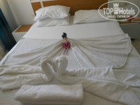 Доброго всем дня суток, начну сначала. В Турции не была давно, отель был подобран по следующим критериям: 1 - я линия, под бюджет (14 дней обошёлся за 69 900 турфирма Интурист) и песок. По прилету встретил гид Иван, что порадовало, водитель автобуса помог с огромным чемоданом и довёз до автобуса и загрузил( ранее летали с Туи, Анекс, такого не наблюдалось, поэтому приятно/ обратно такая же ситуация). До отеля ехать прилично, была промежуточная остановка, можно было купить воды, еды. Привезли в отель, заселили сиюмитно, моему удивлению не было придела , так ещё на понятном русском спросили какой номер хотим, все без денег). Поселили напротив бассейна с видом на ресторан, не самый плохой вариант. Ночью слышно как по лестнице снаружи поднимаются туристы). На следующий день встреча с отельным гидом Александром, опять меня удивили ( может уже привыкли к египетскому подходу) - быстро, все по делу и никого " нажима, чтобы купили экскурсии". Мы съездили на рафтинг комбо, очень довольны)всем рекомендую, единственное детей до 6 лет, лучше всего не брать, бояться. Еще раз надо отметить Интурист-автобус прибыл ровно по времени.А накануне гид позвонил, уточнил время.5 баллов Интурист-автобус!На территории отеля есть магазины, где можно купить тапки для рафтинга, за его пределами в магазине справа ( сразу который), точно такие же шлепки на доллар дешевле. Мы приехали в пт, из фруктов были апельсины и яблоки, поскольку обгорели пошли покупать тунику за пределы, так называемый рынок в 2 минутах от отеля, к примеру кофта на ребёнка стоит 5 долларов(не туника как в Египте, здесь таких не увидела), черешня продавалась за 1 кг стоимостью от 2 баксов до 4, мы взяли за 4- вкусная). Потом судя по всему приехал кто- то из топ менеджеров отеля и прибавился арбуз, очень вкусный. Как прибавилось и официантов и людей в отеле, сезон открыли что ли)В столовой приборы плохо промыты, еда как обычно в 4, ребёнку брала из диететического меню. Очень вкусные овощи гриль и паста к макаронам. За мясом и рыбой очередь. Пирожные из манки как мне показалось. Вообщем еда четверичного отеля, мы к этому готовы были. Алкоголь местного производства ни в 4,ни в 5 не пью, прощу взять в дьютике, поэтому сказать что- либо на сей счёт не могу. Пиво как всегда, которое кстати на 13 день прибывания убрали из бара на пляже, что очень странно, не хватало что ли?! В начала нашей поездки не было анимации на бассейне и цепей, а может и не видели, но после второго приезда топ менеджера ( как я полагаю) становилось лучше и даже уборщик появился на пляже.Про пляж- он маленький, как и соседние пляжи отелей, слишком близко лежаки друг к другу. Мало матрасов, если прийти в 11 часов модно найти лежак ( может и сломаным) но без матраса и на самом солнце. Те, кто рано вставал, занимал хорошие места, но мы увы, любим поспать). Не понравилось ещё, что справа если стоять спиной к отелю на одном из покрытий была дыра, а на другом должно быть покрытие, но его не было( ведь это четверка, а не тройка). В связи с этим совет, если все- таки поедете, берите с собой зонт. Хотя они и там продаются, в магазинах при отеле есть все практически, но наверное дорого.Полотенцами пляжными не пользовались, были свои, но вид у них яркий, новый, приятно. Днём была аквааэробика, конкурсы в бассейне " танец живота и проч. ", днём также волейбол и можно в дротики покаместь, вечером мульти