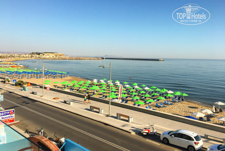 Наконец, самый главный козырь нашего номера. Его нам показали в последнюю очередь. Это – вид! Загадочно улыбнувшись, женщина с ресепшна, отодвинула штору... и там был балкончик, с прекрасным видом на набережную и море. Там стояли столик и два кресла. Вдоволь налюбовавшись видом, разобрав вещи и переодевшись, мы пошли гулять по городу. Развлечений в Ретимно полно. Начиная от достопримечательностей, заканчивая всевозможными тавернами, магазинами, барами и водным спортом. Но в этот первый вечер, уже наевшись в отеле, мы прогулялись по набережной, зашли в магазин купить местного вина и пошли в отель на наш прекрасный балкончик. Там мы провели, любуясь закатом, десять чудесных вечеров с вином местного производства и вкуснейшим критским сыром.