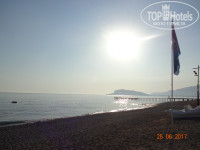 До моря можно дойти пешком за 10-15 мин, но можно доехать на автобусе, который ездит почти каждые полчаса. Лучше, конечно ходить пешком, но нужно найти правильную и короткую дорогу, мы её нашли только со 2 раза. Сам пляж отеля хороший, песок, затем мелкая галька. На пляже есть шезлонги, бар, маленький ресторан, душ, туалет, детская площадка и также сильный Wi-Fi (я смогла к нему подключится, так как купила пароль)